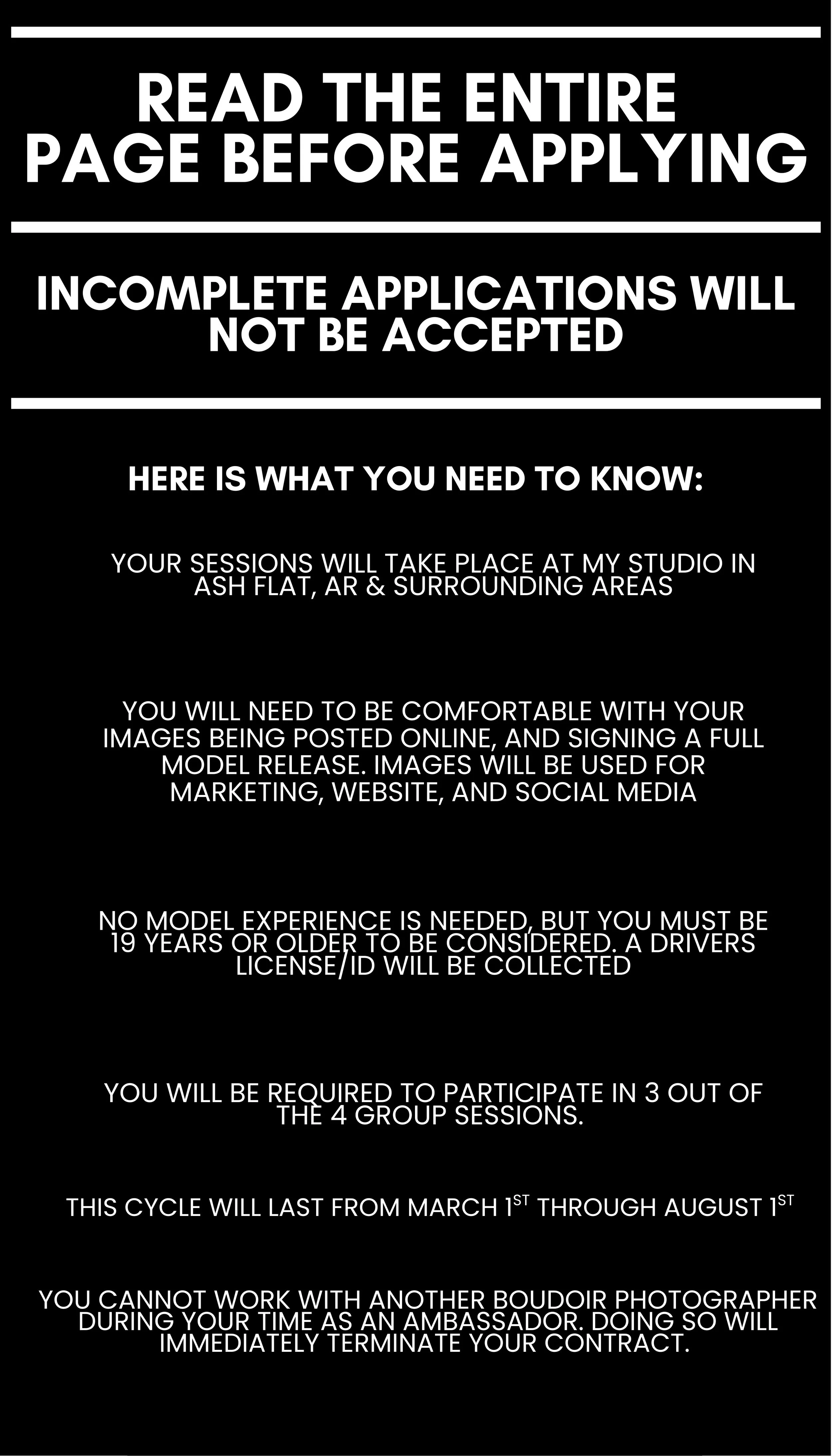 Hello! My name is Katelyn, and I am the one behind the camera. My studio is located in a little town called Ash Flat, AR and I am in the search for a powerful group of women interested in being part of an empowering ambassador program. 2026 is the year for new experiences, and we are going to make this a year to remember!!